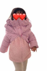 ピンク色のジャケットを着た娘さんの姿を見たママさんは「上手に着れたね」と声をかけます。