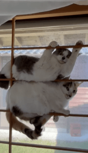 勝負の行方ですが…猫たちの存在感に圧倒され、娘さんはそっとカーテンを閉めたそうです。