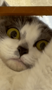@2bu5maさんの顔を見た瞬間、2匹は猛ダッシュで猫部屋へ逃げ込んだといいます。あとを追って娘さんがカーテンを開けると…そこには確かに2匹がいました。