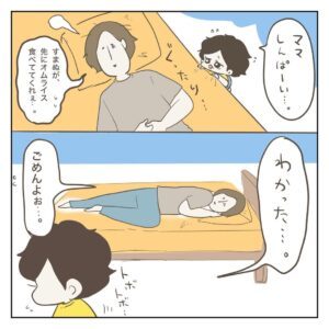 トイレから出たあとも腹痛が治まらずベッドでぐったりしていると、息子さんがそっと近寄ってきました。