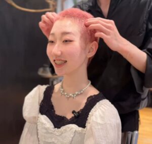 お客さんの希望は、ワンブリーチで仕上げるペールピンクのような、やわらかく色素の薄いピンクカラーでした。