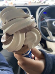 受け取ったソフトクリームに驚き
