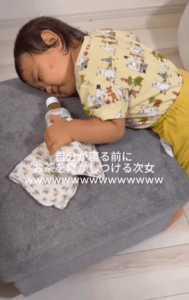 今回ママさんが投稿していたのは、生後4ヶ月の息子さんを寝かしつけた後に目撃した娘さんの様子。なんと、当時1歳だった娘さんがまさかの“お茶”を寝かしつけていたのです。