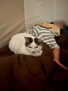 そこで目に入ったのは、パパさん、娘さん(3歳)、愛猫のうめちゃん(4歳)がひとかたまりになっている姿でした。
