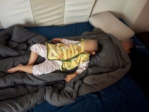 身動きが取れないまま、寝落ちしてしまったパパさん