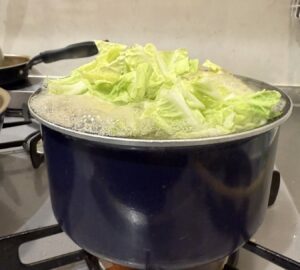 鍋いっぱいに広がった具材を前に、まず意識したのは吹きこぼれを防ぐことでした。火加減を調整しながら「これは戦いだ」と慎重に煮込む時間が続きます。