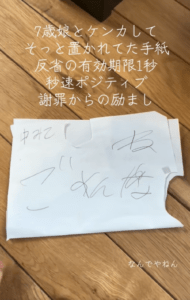 ママさん(@ponko.ponko1)が、7歳の娘さんとのケンカのあとに受け取った手紙についてTikTokに投稿し、話題になっています。いったい何が書かれていたのでしょうか?ママさんに話を聞きました。