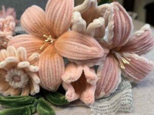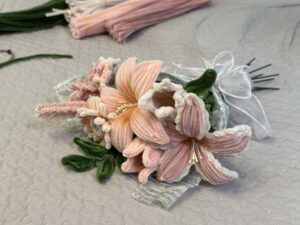 淡いピンク色のモールで作られた花は、1本ずつ丁寧に形作られており、ブーケとしてまとめられていました。ブーケを見たパパさんは「モールでこんなものができるのか!」と驚いたといいます。