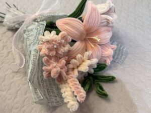 誕生日当日に用意できなかった分、時間と工夫を込めて作られたモールのブーケ。娘さんの思いが伝わる、温かな贈り物となりました。
