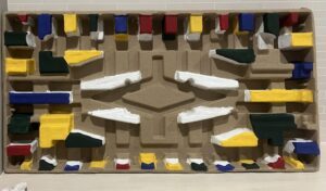 色塗りの際にこだわったことを尋ねると「段ボールの荒い凸凹した表面をなるべくならすように塗り、色をなるべくたくさん使うようにしました」と答えてくれました。