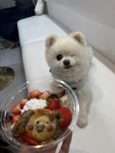 現在のwinkくんは、とてもおっとりとしていて甘えん坊な性格。優しく穏やかで、大きな犬にも上手にあいさつができる社交的な一面もあります。