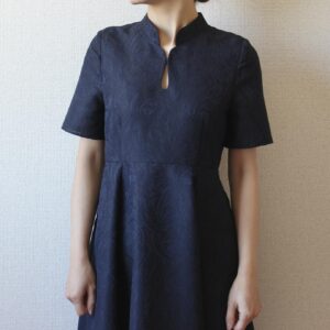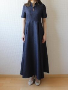 仕上がった服は、胸元がひょうたんのように開いた上品なワンピースです。