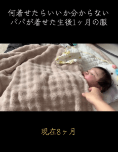 パパさんは普段仕事で家にいない時間が長く、日常的な着替えは主にママさんが担当しています。そのため、服のサイズ感までは把握しきれていなかったことが今回の出来事につながりました。