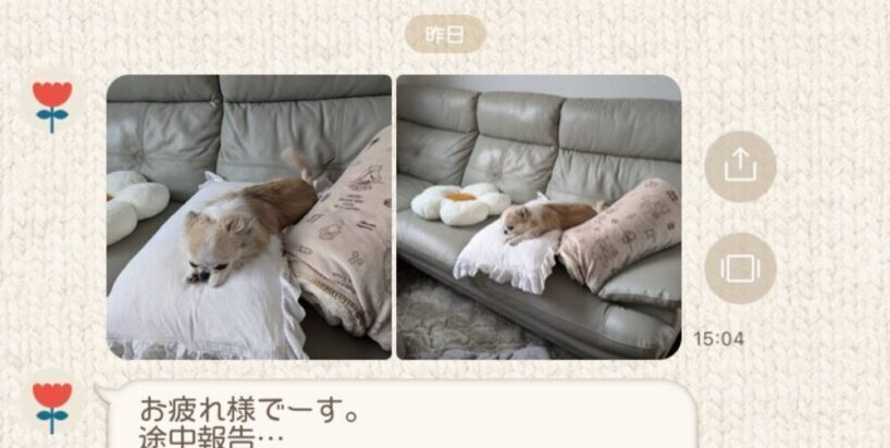 ストレッチ中…おしり付近に違和感を覚えた女性。見てみると、尊すぎる元凶が発覚し「お手伝い…?w」「ゆりかご笑」