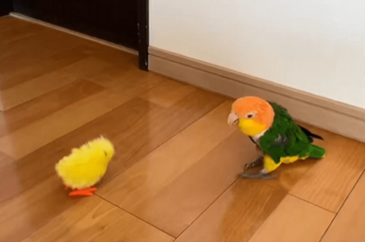地面に置かれた一口サイズのフルーツ。よ~~く見ていると…5秒後”まさかの光景”に「頑張ってほしい」「本当にえらい」
