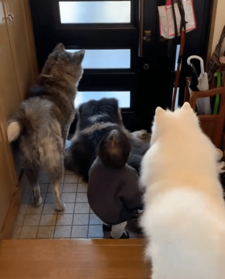 兄弟のように育ってきた9ヶ月息子とハスキー犬。しかし…ばあばに怒られた直後、2人のまさかの行動に「そっくりだな」「コントか」