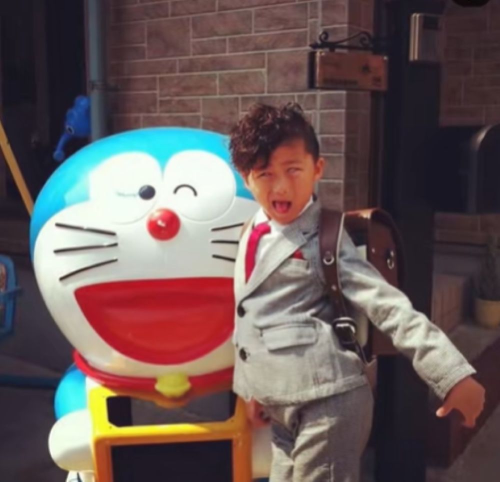 • 自宅前のドラえもんフィギュアと写真を撮る小学生息子。14年後のまさかの姿に「おかんの気分味わえた」と称賛の声