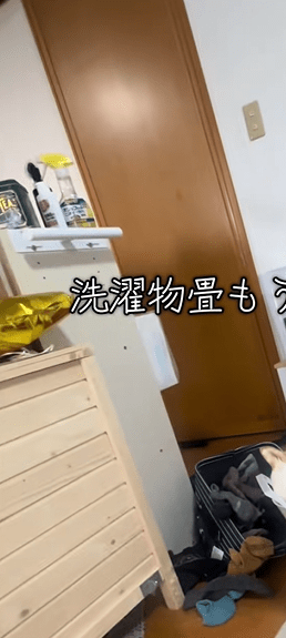 • 部屋に入ると、不自然に散乱した洗濯物に違和感。あたりを見回すと…「ありゃー」「シンデレラフィット」「めり込んでるwww」